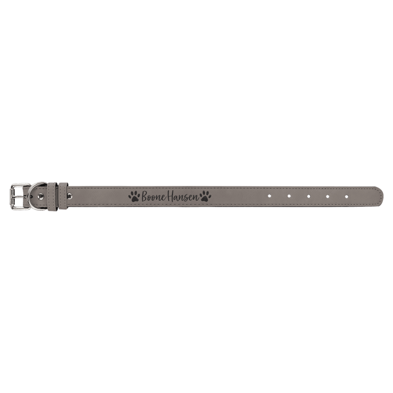 Add a pop of color and a touch of personalization to your pup’s everyday style with our Small 15" x 3/4" gray Laserable Leatherette Dog Collar. Crafted from high-quality, vegan-friendly leatherette, this collar is designed for comfort, durability, and easy customization. The vibrant teal finish stands out on any dog, while the laserable surface lets you add your pet’s name, contact info, or a fun design for that extra-special touch.