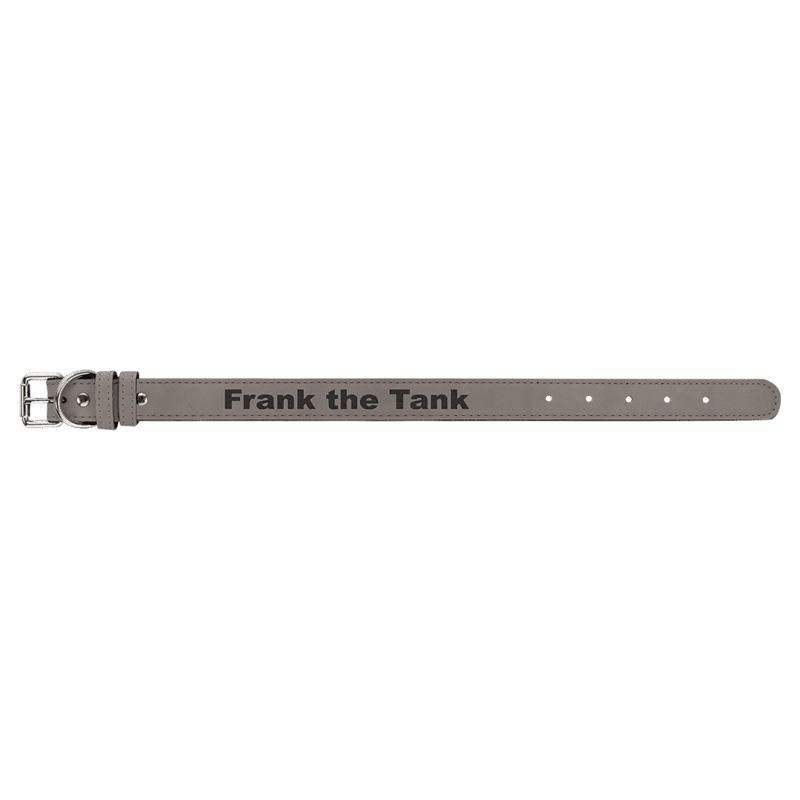 Give your dog a sleek, modern look with our Medium 19" x 1" Gray Laserable Leatherette Dog Collar. Crafted from premium vegan leatherette in classic black with silver-tone hardware, this collar is both stylish and built to last. The laserable surface is perfect for personalizing with your pet’s name, contact details, or a unique design—making it as functional as it is fashionable.