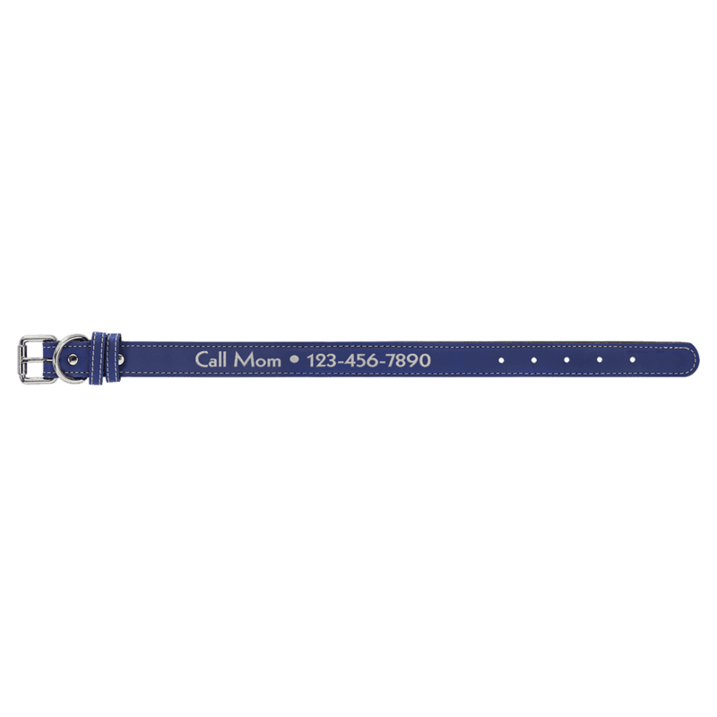 Give your dog a sleek, modern look with our Medium 19" x 1" Blue/Silver Laserable Leatherette Dog Collar. Crafted from premium vegan leatherette in classic black with silver-tone hardware, this collar is both stylish and built to last. The laserable surface is perfect for personalizing with your pet’s name, contact details, or a unique design—making it as functional as it is fashionable.