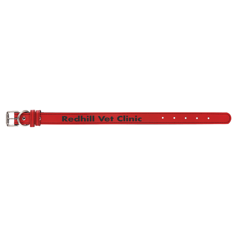 Give your dog a sleek, modern look with our Medium 19" x 1" Red Laserable Leatherette Dog Collar. Crafted from premium vegan leatherette in classic black with silver-tone hardware, this collar is both stylish and built to last. The laserable surface is perfect for personalizing with your pet’s name, contact details, or a unique design—making it as functional as it is fashionable.